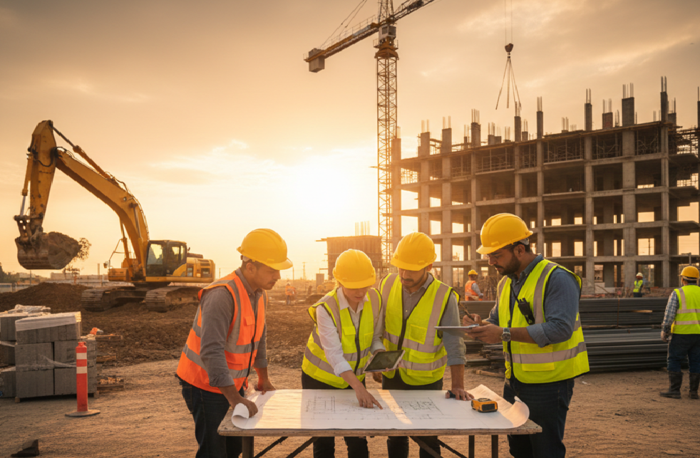 Ejecución de proyectos de construcción con precisión técnica, cumplimiento normativo y visión comercial. Usamos equipos modernos y drones para supervisión y control en campo.