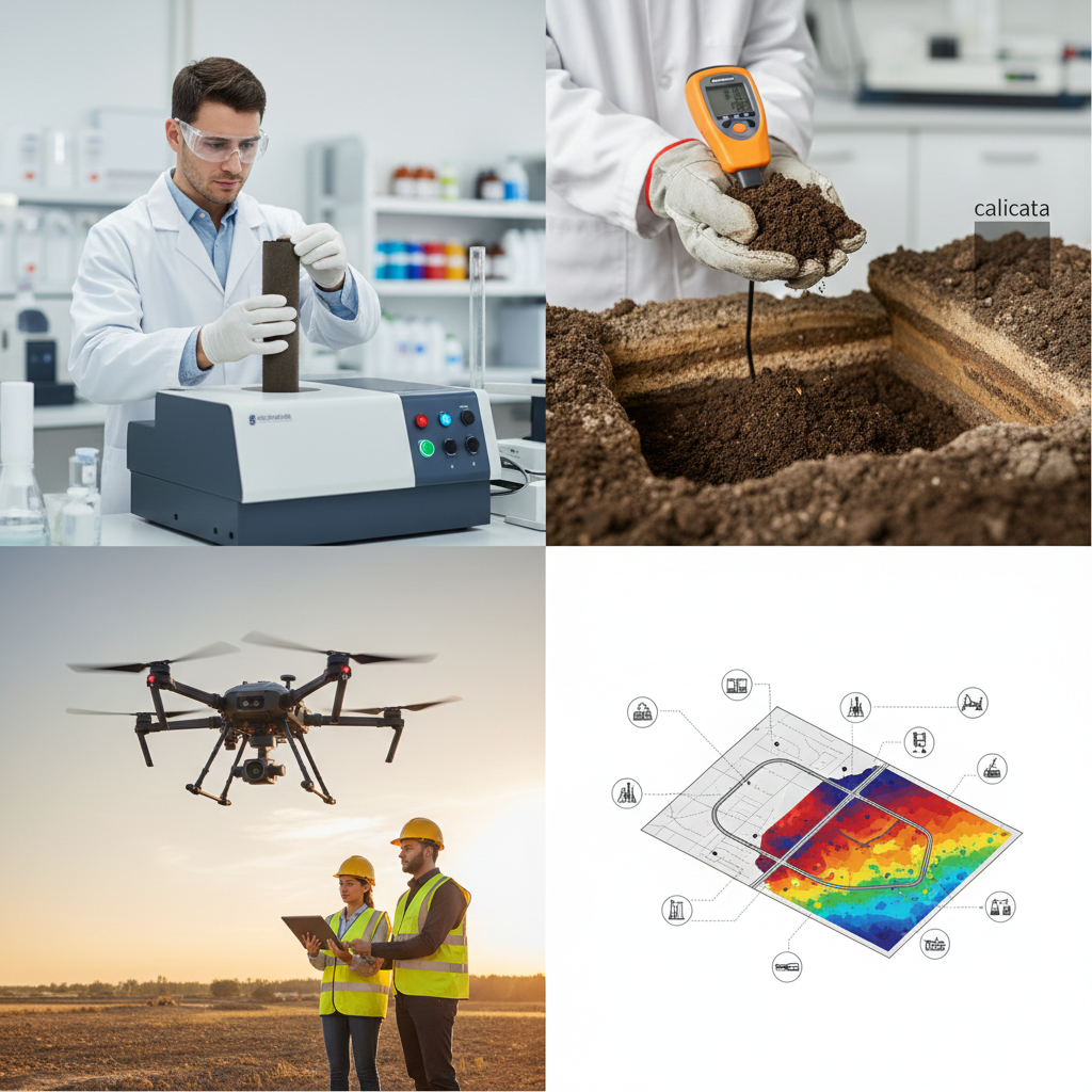 Análisis físico y mecánico del terreno con ensayos de laboratorio. Complementamos con drones para identificar áreas críticas y optimizar la planificación